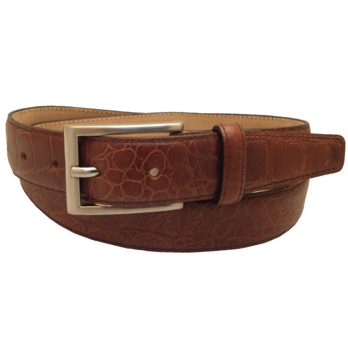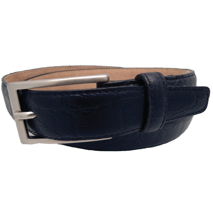 Our 30mm full grain crocodile textured leather belt features a classic brushed nickel buckle. If you are seeking a vintage-inspired look, this belt is perfect to add a vintage touch to your formalwear outfit.
