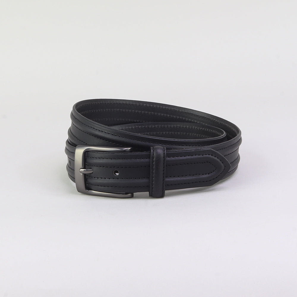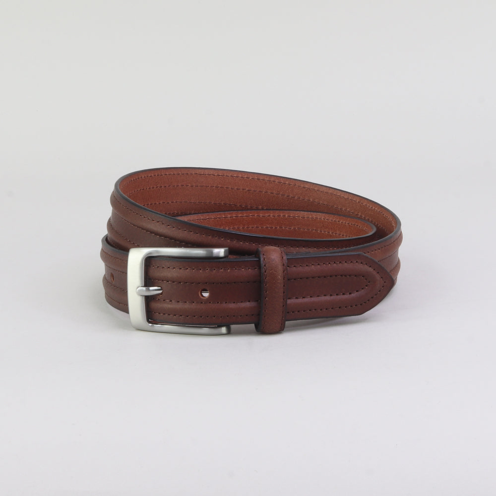 Our 34mm casual ribbed full grain feather edge leather chino belt features a single keeper and a silver-finished brushed buckle, making it perfect for stylistic casual occasions and a great addition to every gentleman's belt collection.
