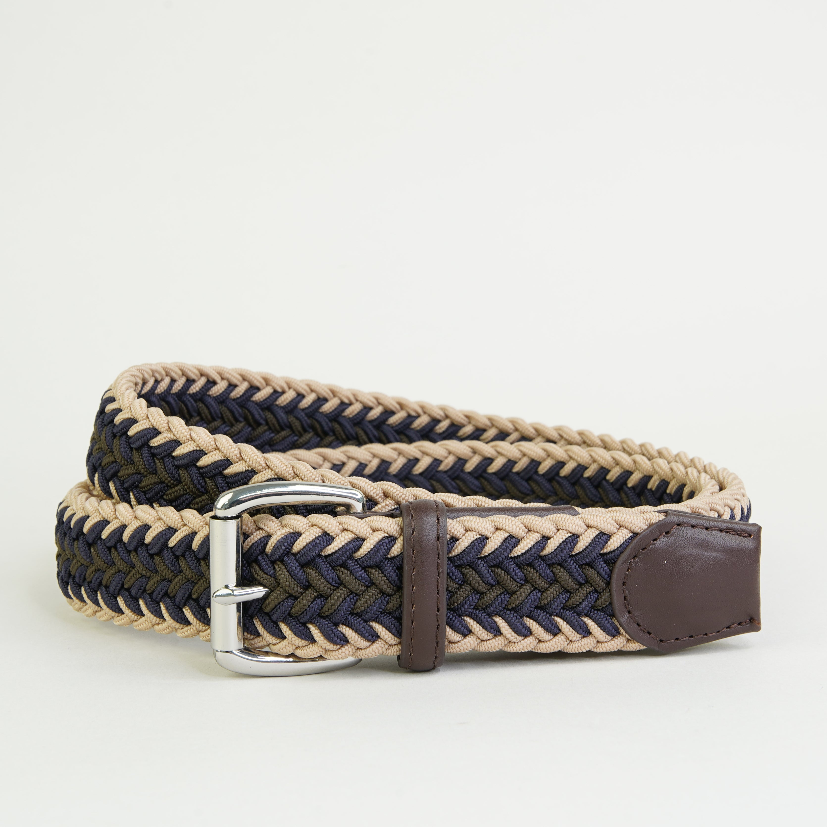 Sheringham Chevron Weave Elastic Web Belt Biscuit/Navy/Olive
