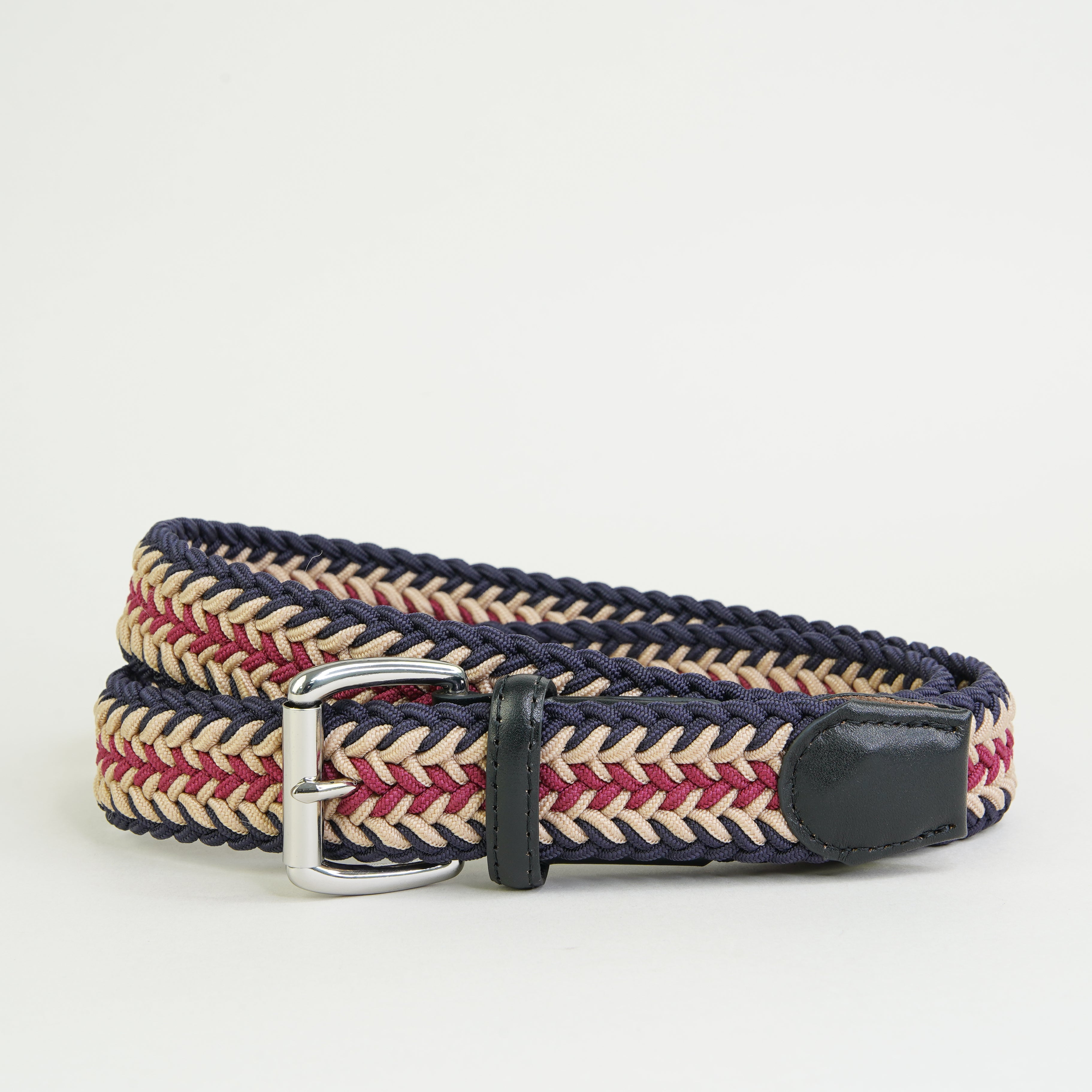 Sheringham Chevron Weave Elastic Web Belt Navy/Biscuit/Wine