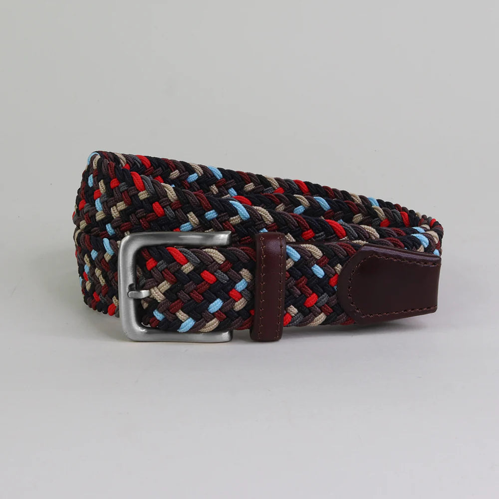 Wakerley 35mm Brown/Ecru/Red Elastic Belt