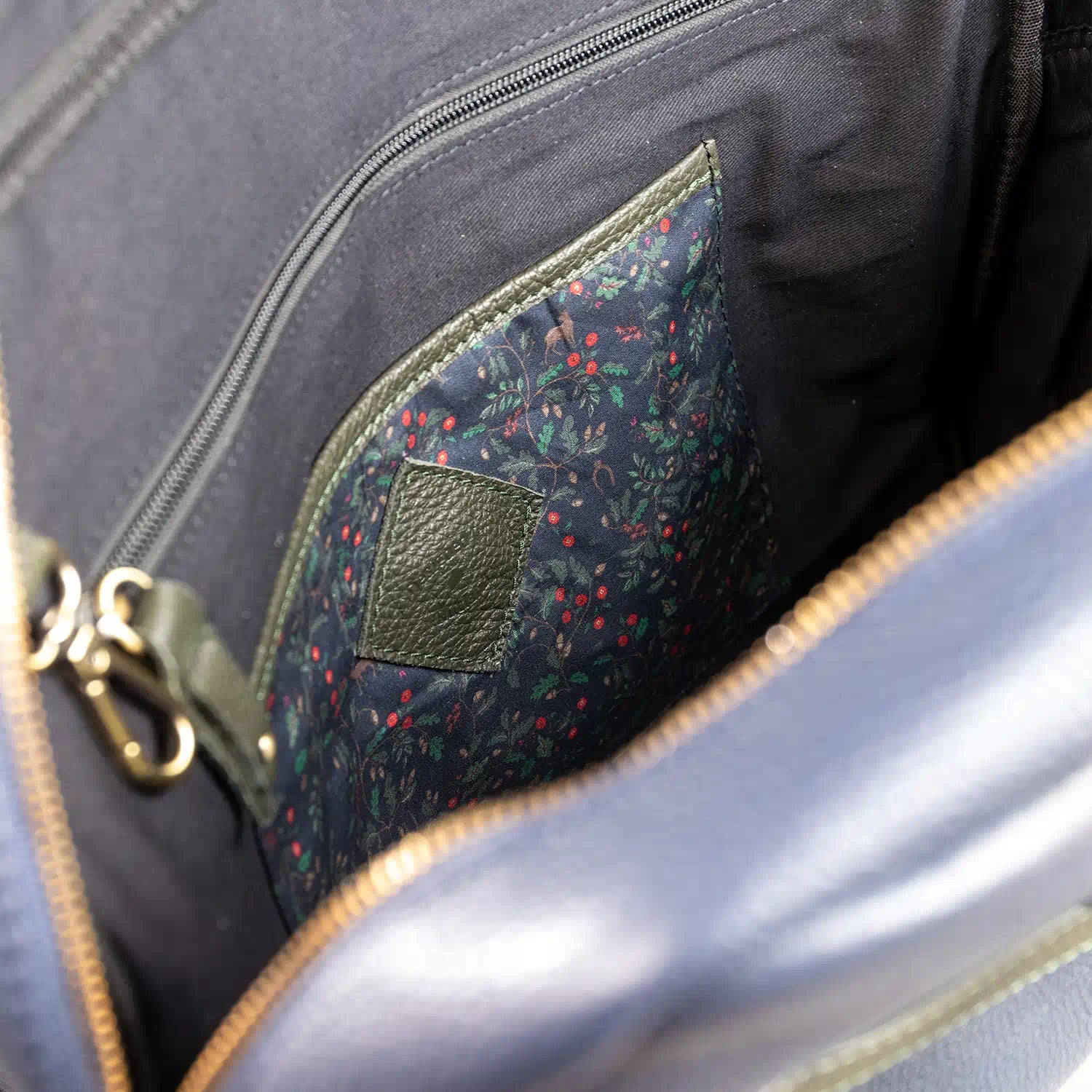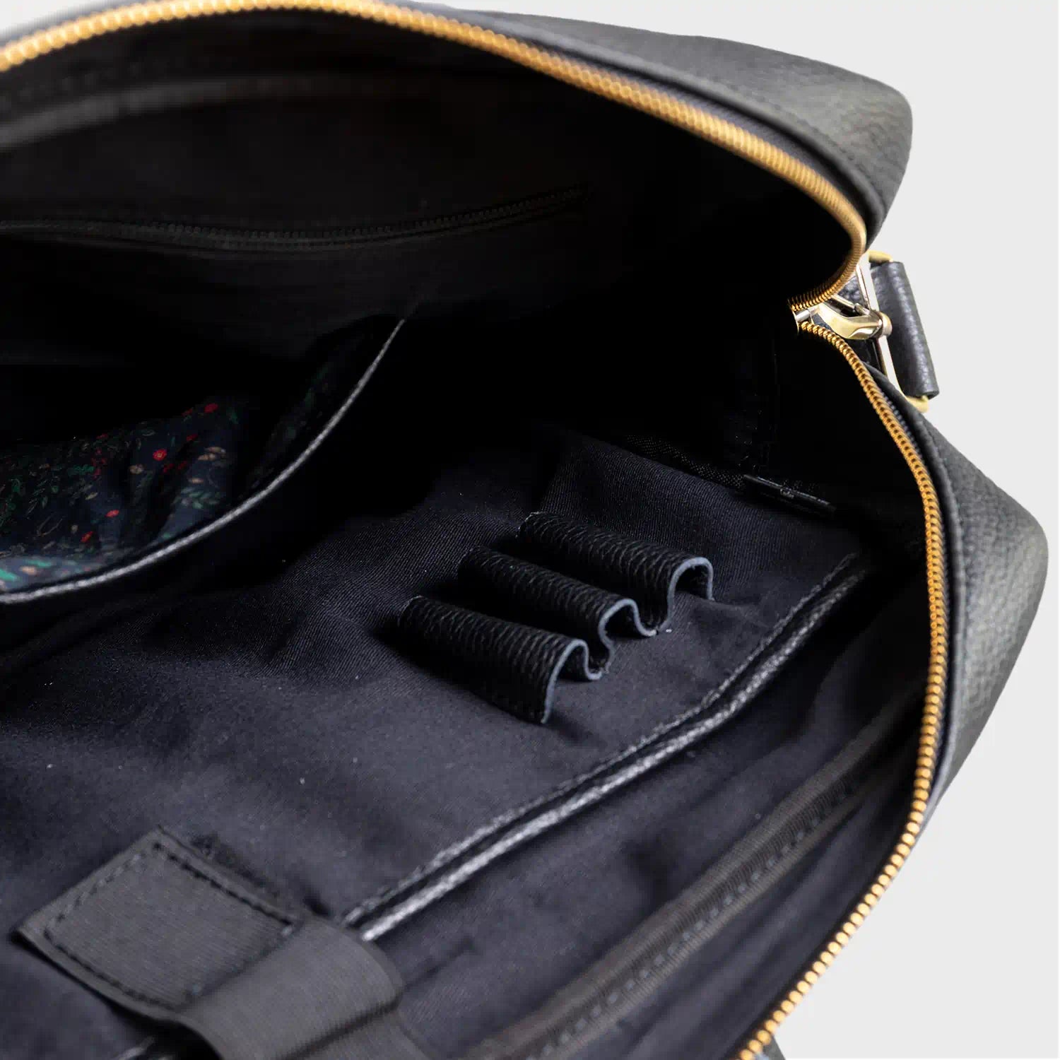 Available in sleek black or navy with green accents, the Alder transitions seamlessly from office to travel, making it the perfect balance of modern design and timeless craftsmanship.