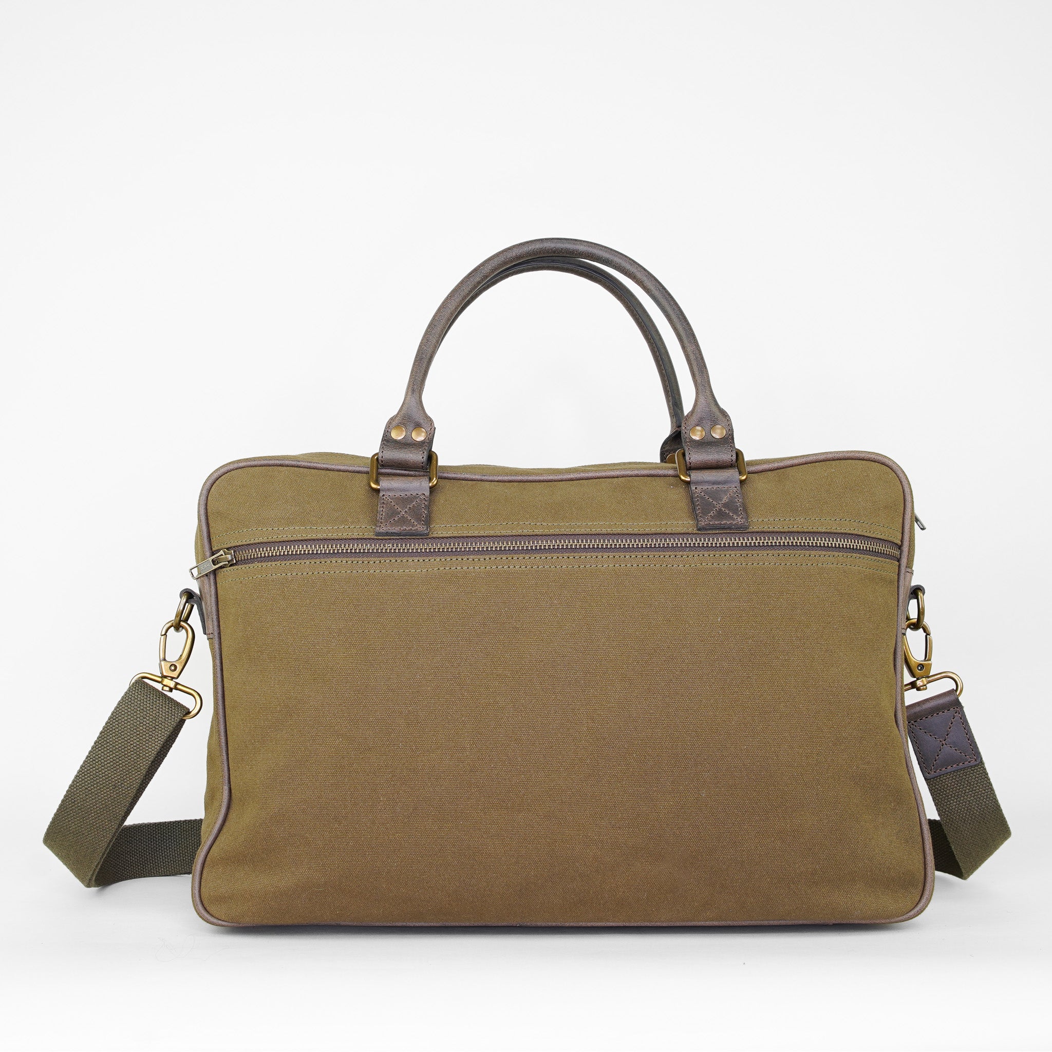 Olive Waxed Canvas Briefcase - Perfect Laptop Bag
