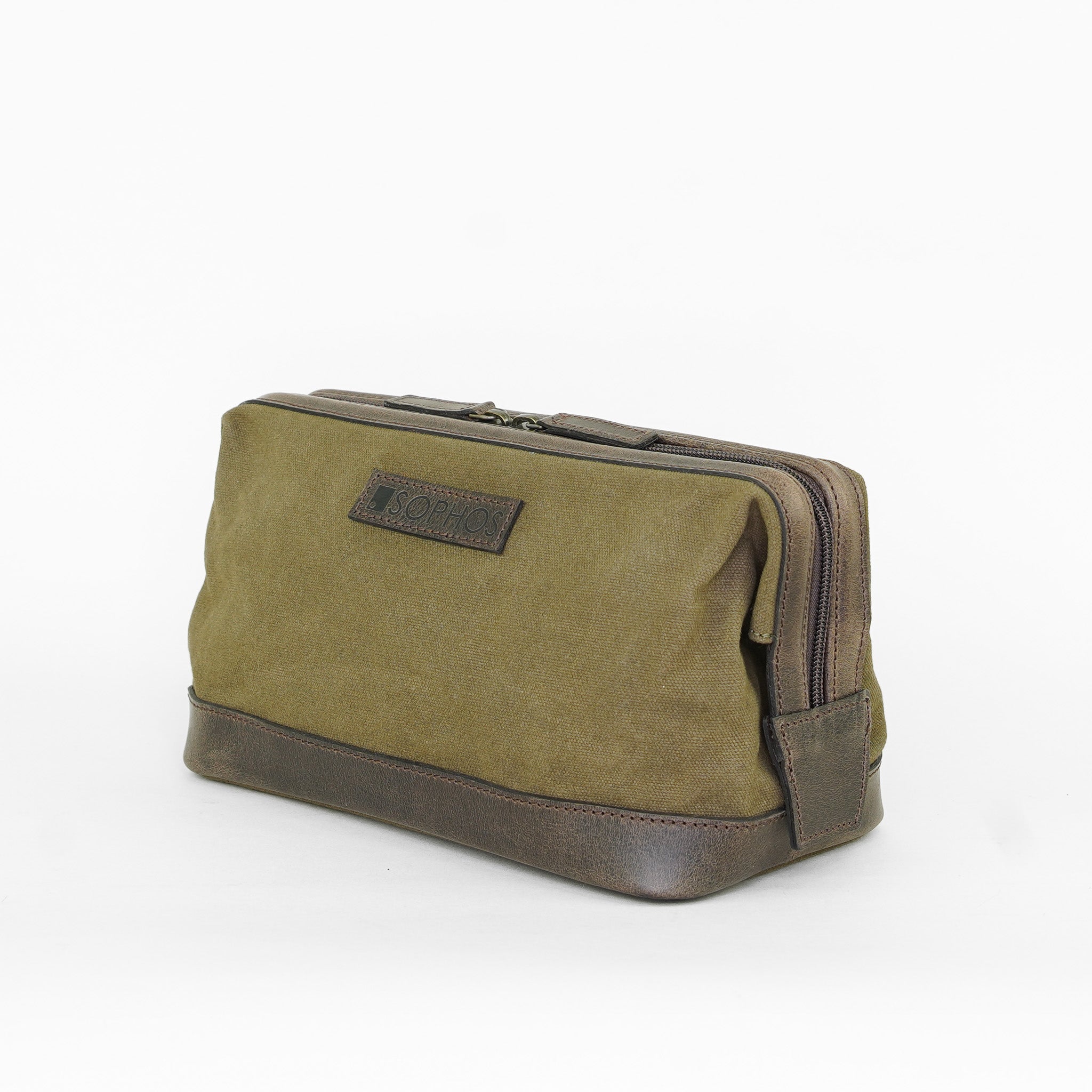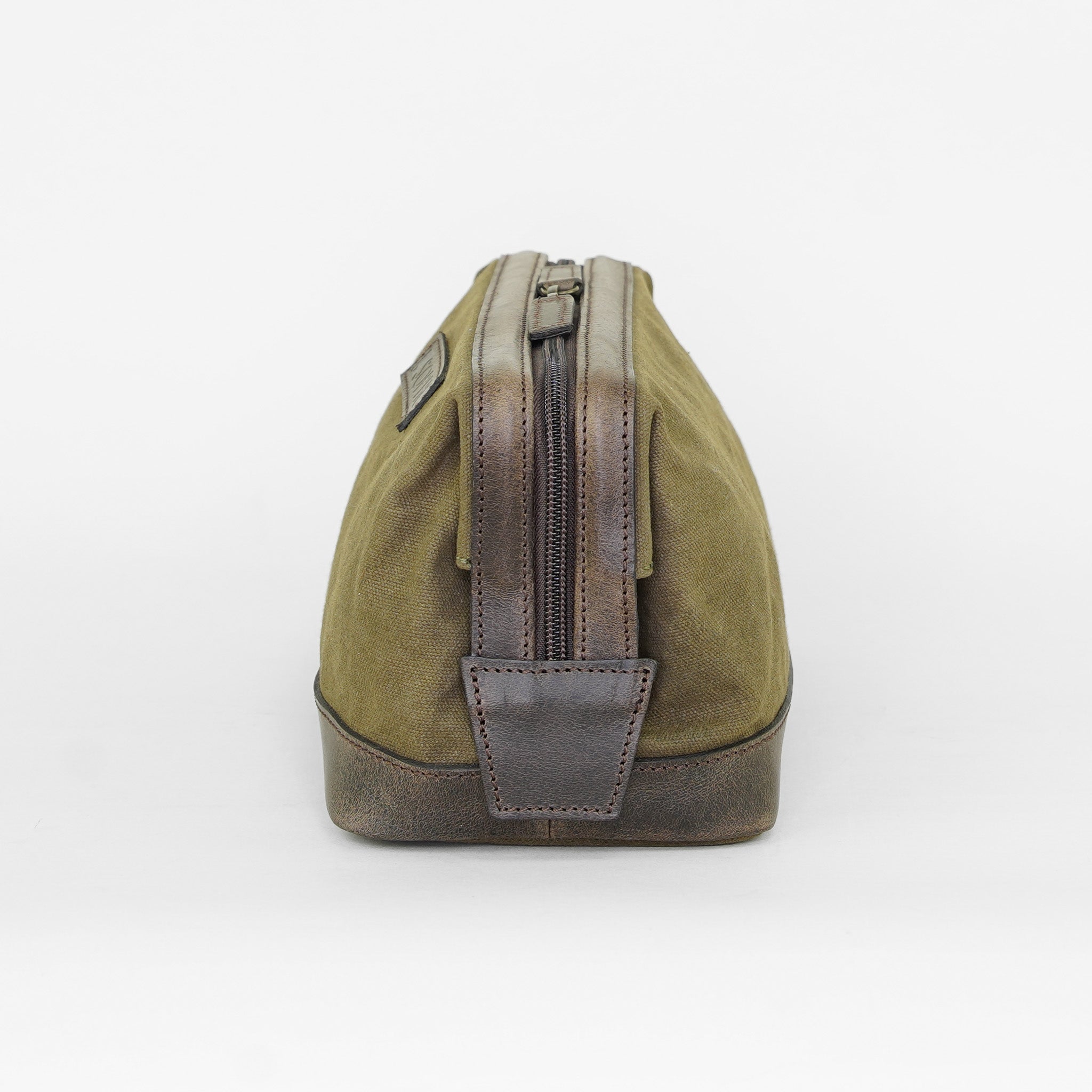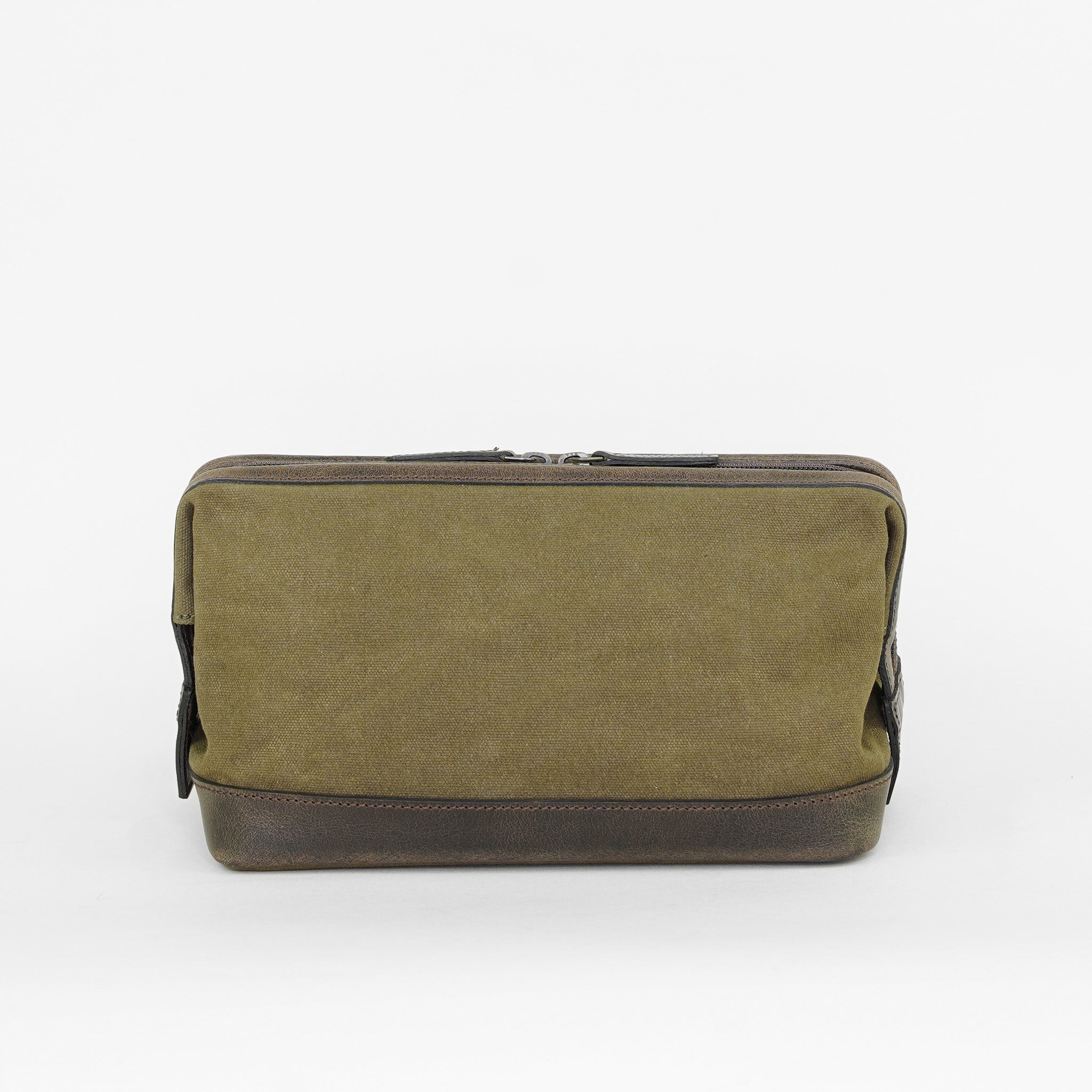 Olive Waxed Canvas Gladstone Washbag - Toiletries Bag