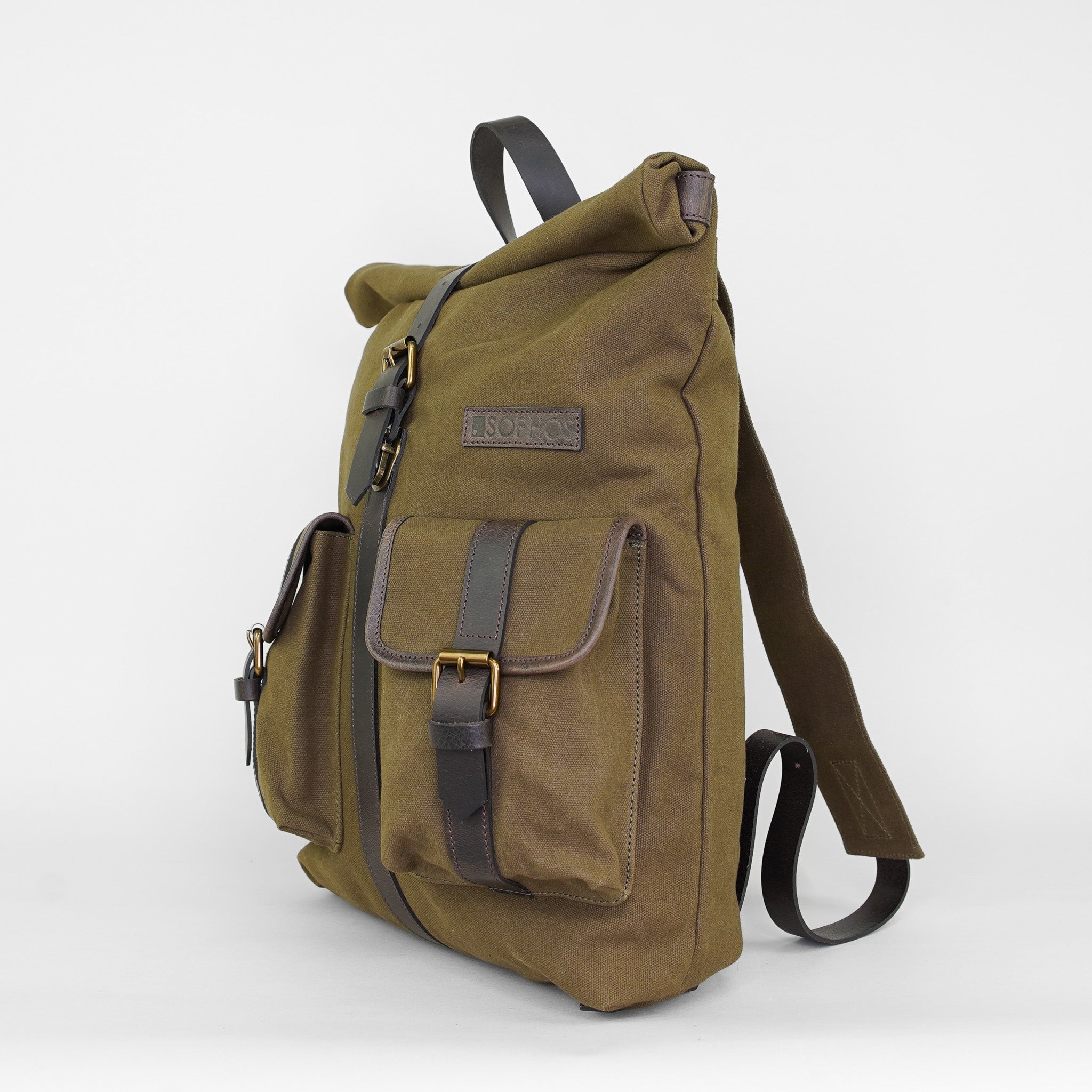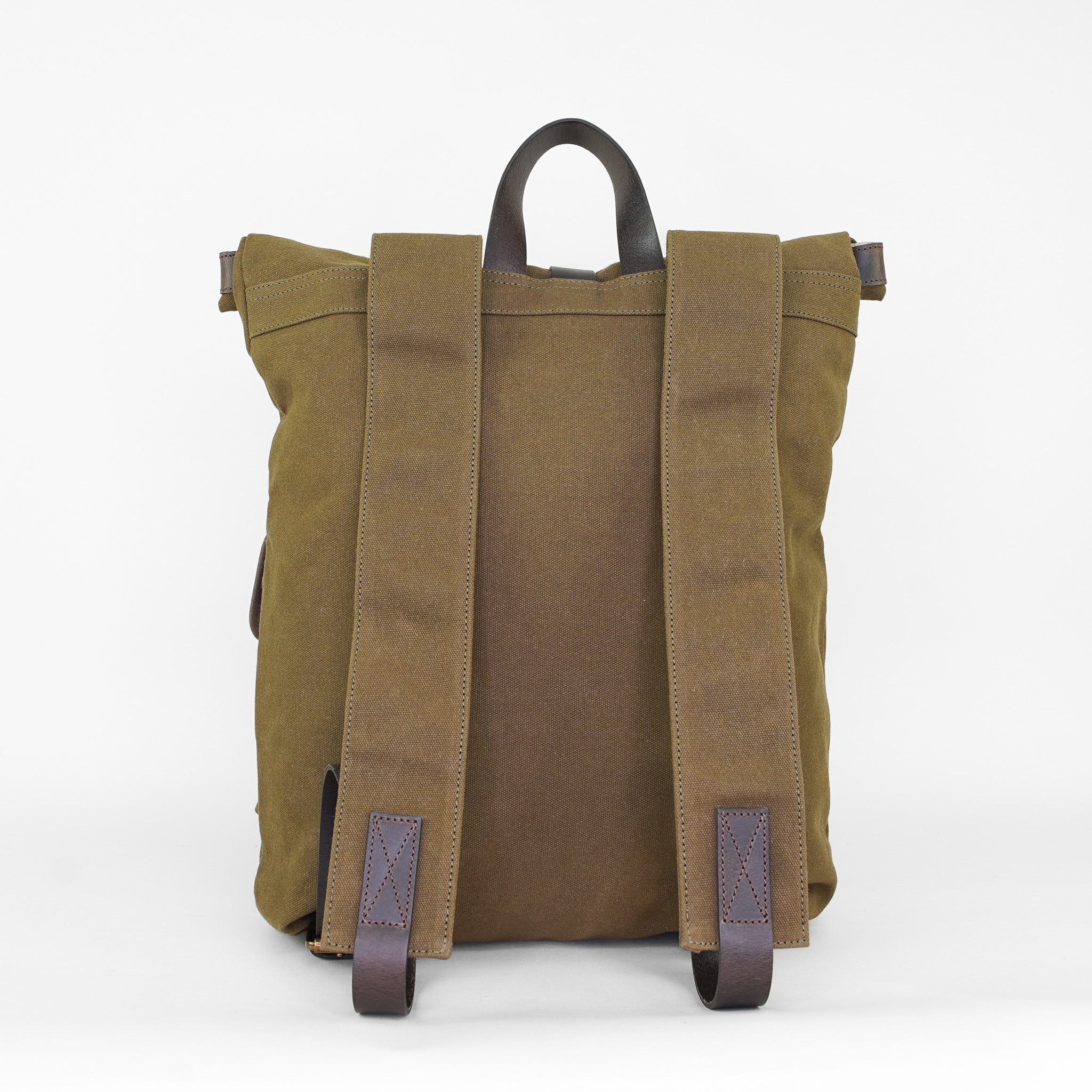 Olive Waxed Canvas Roll Top Rucksack Backpack - Waxed Canvas Durability