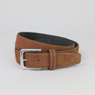 Elevate any ensemble with our 34mm casual suede leather belt. Meticulously crafted with feathered edging, stitched embellishments, luxe leather lining, and a brushed buckle, this sophisticated belt is a timeless accessory perfect for all occasions, sure to be a treasured addition to any gentleman's collection. Finished with superior precision and attention to detail, this belt symbolizes subtle elegance and quality craftsmanship - just what you'd expect from Glaston. Upgrade your wardrobe with this luxurious staple, sure to turn heads for years to come.