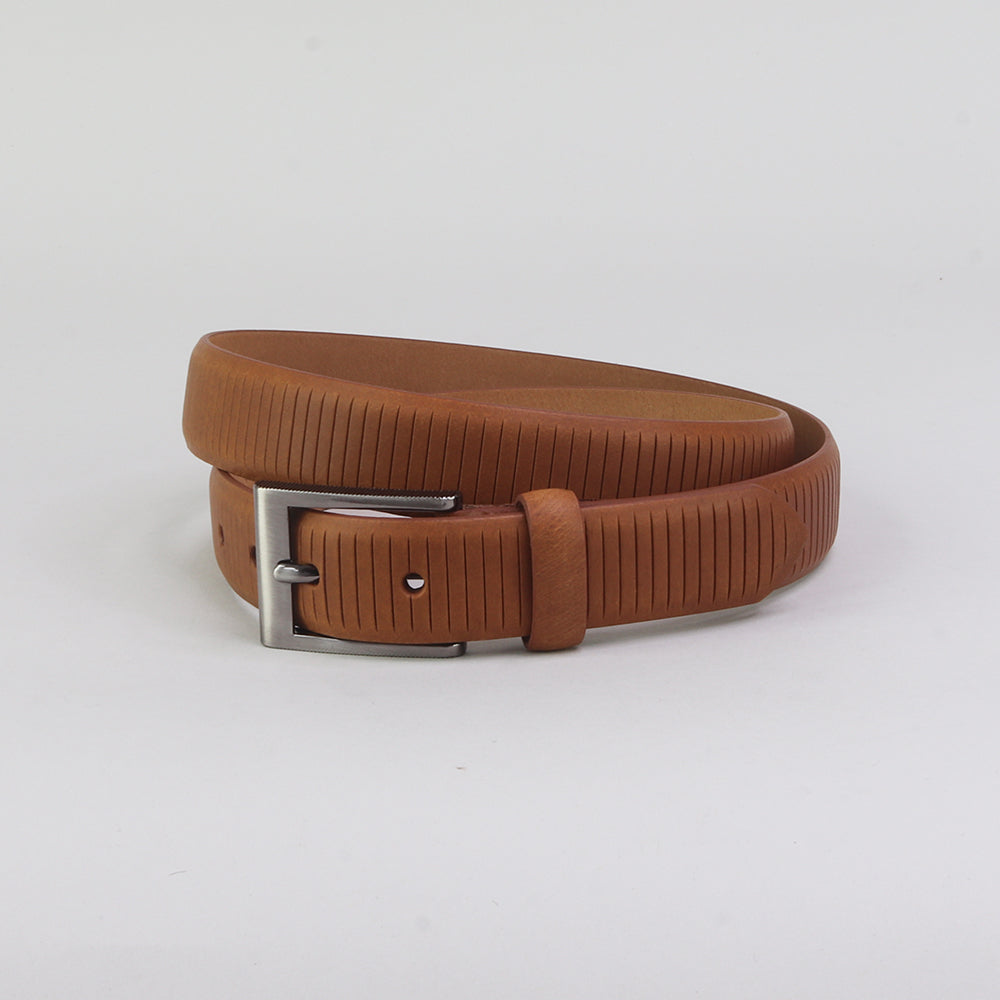 Jeder Gürtel wird im gesamten Prozess vom Schneiden, Kantenblockieren, Lochen, Stempeln und Aufnähen von Metallteilen von Hand gefertigt. Das Ergebnis sind wunderschöne Luxusgürtel aus feinstem, vollnarbigem, pflanzlich gegerbtem Leder.