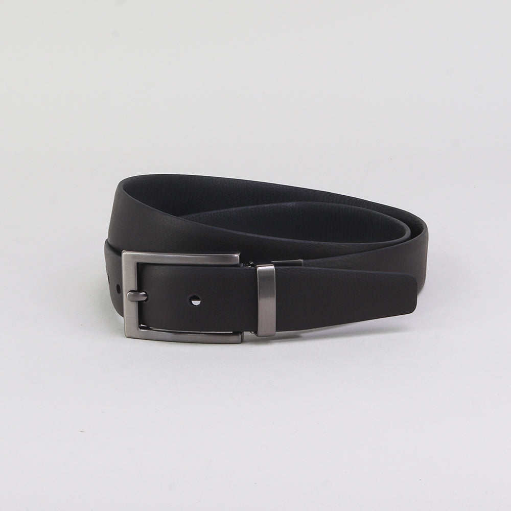 Dieser wendbare 30-mm-Rindsledergürtel verfügt über eine leicht gebürstete silberfarbene Schnalle und eine halbmatte Oberfläche und bietet Ihnen die Vielseitigkeit, im Handumdrehen von Schwarz zu Braun zu wechseln. Dieser exquisite Gürtel eignet sich perfekt für unterwegs. Er bringt Luxus in die Garderobe jedes Herrn und ist das ideale Geschenk. Dieser Gürtel ist ein zeitloses Accessoire, das überall einen Hauch von Eleganz verleiht. Er ist die perfekte Möglichkeit, Ihren Look zu verfeinern und gleichzeitig ein starkes modisches Statement zu setzen.