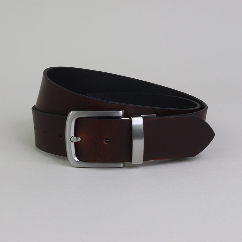 Unser lässiger 30-mm-Jeansgürtel aus Vollnarbenleder zum Wenden verfügt über eine leicht gebürstete Rotgussschnalle. Bei diesem Gürtel haben Sie die Wahl, Schwarz oder Braun zu tragen, was ihn perfekt für Reisen macht, da er auf ein Minimum an Accessoires beschränkt ist. Es ist ein ideales Geschenk und eine tolle Ergänzung für die Gürtelkollektion jedes Herrn.
